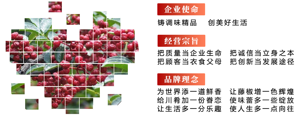 四川古道味蕾生物科技有限公司,伊始2016年成立于2018年。是响应国家“一带一路”战略,以花椒藤椒种植基地到精加工产业链打造,专业从事川味特色调味料研发、生产和销售为一体的现代化农产品科技开发综合企业。
